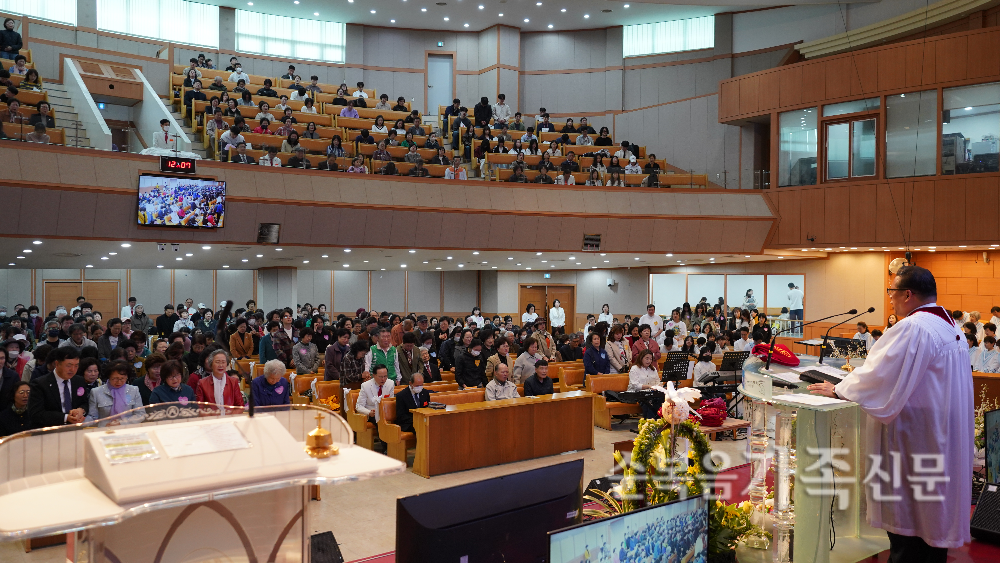 • 182명 새신자와 부활의 기쁨 나눠 여의도순복음새성북교회는 5일 대성전에서 ‘부활주일 및 새생명전도축제’를 열고 부활의 기쁨을 나누며 영혼 구원의 열정을 모았다. 이날 182명의 새신자가 교회를 찾았고 장로회부터 교회학교에 이르기까지 전 세대가 한마음으로 섬기며 새가족들을 따뜻하게 맞이했다. 최근남 장로회장의 대표기도로 시작된 예배에서 담임 양승호 목사는 ‘부활의 주님 만나면 다 되는 것입니다’(요 20:24~29)라는 제목으로 말씀을 선포했다. 양 목사는 “부활의 주님을 만나면 세상의 근심과 걱정을 이기고 승리하게 된다”고 전하며 성도들에게 부활 신앙으로 담대히 살아갈 것을 권면했다. 이어 성도들은 새성북교회의 부흥과 발전을 위해 뜨겁게 합심기도 했고, 3450장년부와 교회학교 자녀들은 함께 헌금찬양과 율동을 드리며 예배의 감동을 더했다. 특히 영아유치부 어린이들도 주일예배 후 노방전도에 참여하며 복음 전파에 힘을 보탰다. 새성북교회는 2월부터 두 달간 매주 수요일과 금요일마다 각 교구가 노방전도와 부침개 전도를 이어오며 새생명전도축제를 준비해왔다. 이번 행사는 전 세대가 함께 기도하고 섬기며 부활의 복음을 전한 뜻깊은 시간이 됐다.